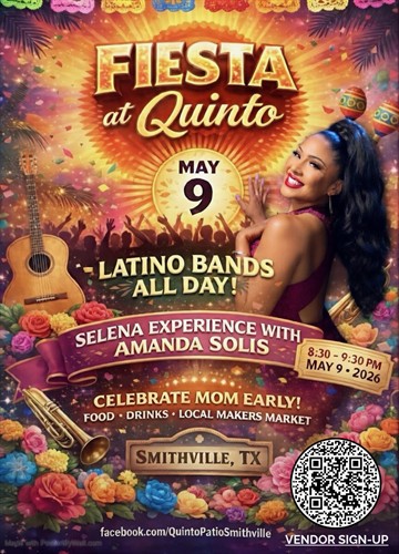 Vendor spots available. Scan the flyer QR code to sign up.Location:114 NE 2nd St, Smithville, TX 78957Date/Time Information:Saturday, May 9, 2026